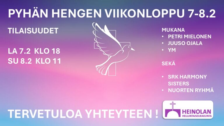 Toivotamme sinut tervetulleeksi seurakuntaperheeseemme! Voit aina osallistua kaikkiin tilaisuuksiimme ja pyrimme siihen, että ainakin joku meistä olisi toivottamassa sinut tervetulleeksi – kotiin on mukava tulla, kun joku on jo kotona. Toivomme että näiltä kotisivuilta löydät sinua kiinnostavia asioita, mutta henkilökohtaista kokemusta ja Jumalan kohtaamista ajatellen toivomme, että avaat rohkeasti oven ja tulet mukaan, Jeesuskin on lupauksensa mukaan siellä, missä häneen uskovat kokoontuvat.