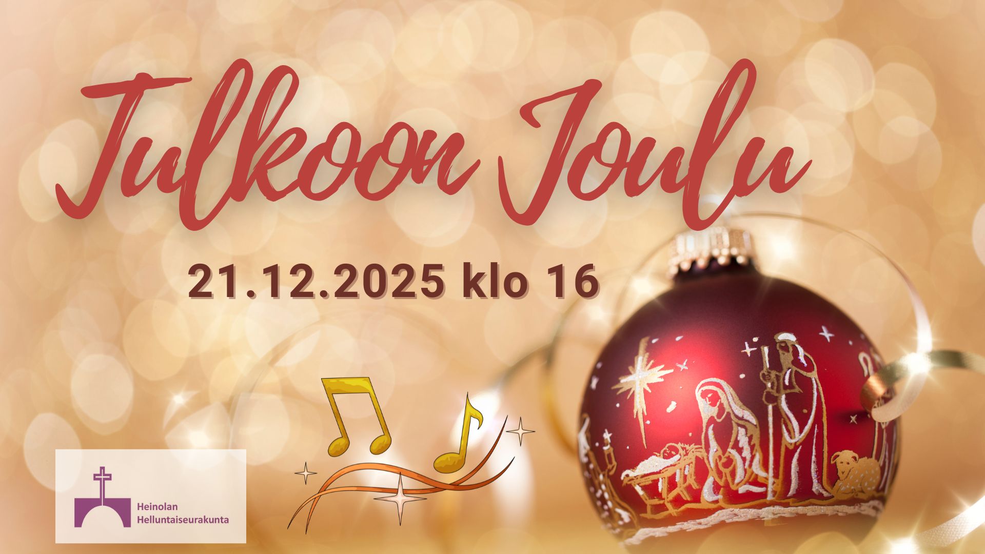 Tulkoon Joulu Mukana mm. Veikko Juurikkala Väliajalla glögi-tarjoilu Lämpimästi tervetuloa! + Lisää Google kalenteriin + iCal / Outlook export Päivä joulu 21 2025 Aika 16:00 - 17:30 Jaa tapahtuma