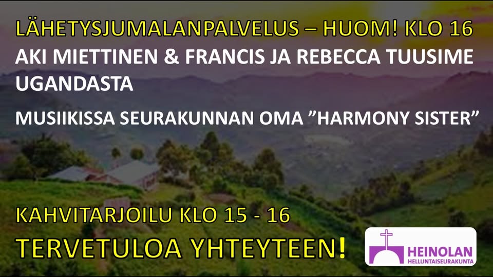 Lähetysjumalanpalvelus – Huom! klo 16