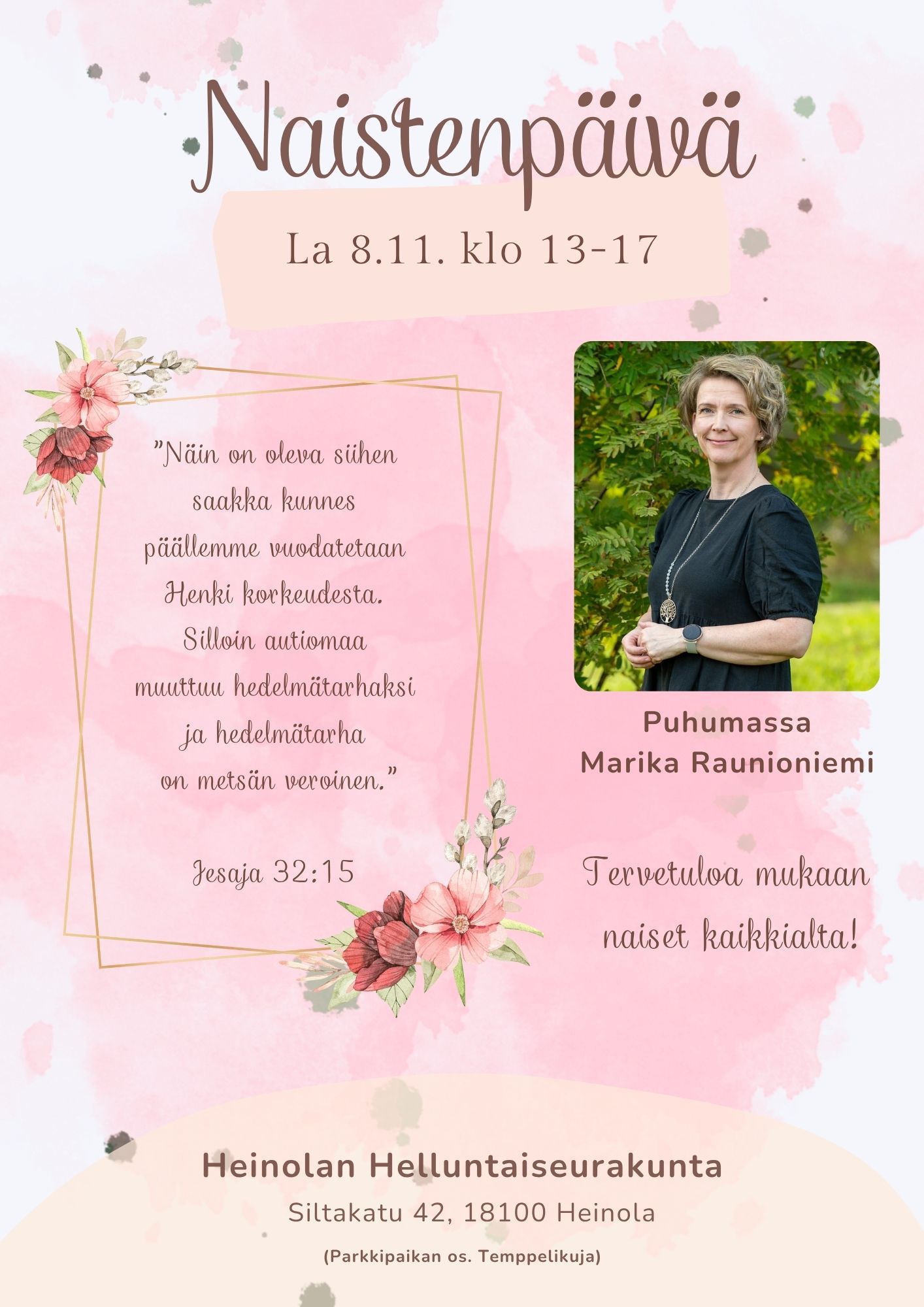 Naistenpäivä + Lisää Google kalenteriin + iCal / Outlook export Päivä marras 08 2025 Expired! Aika 13:00 - 17:00 Jaa tapahtuma